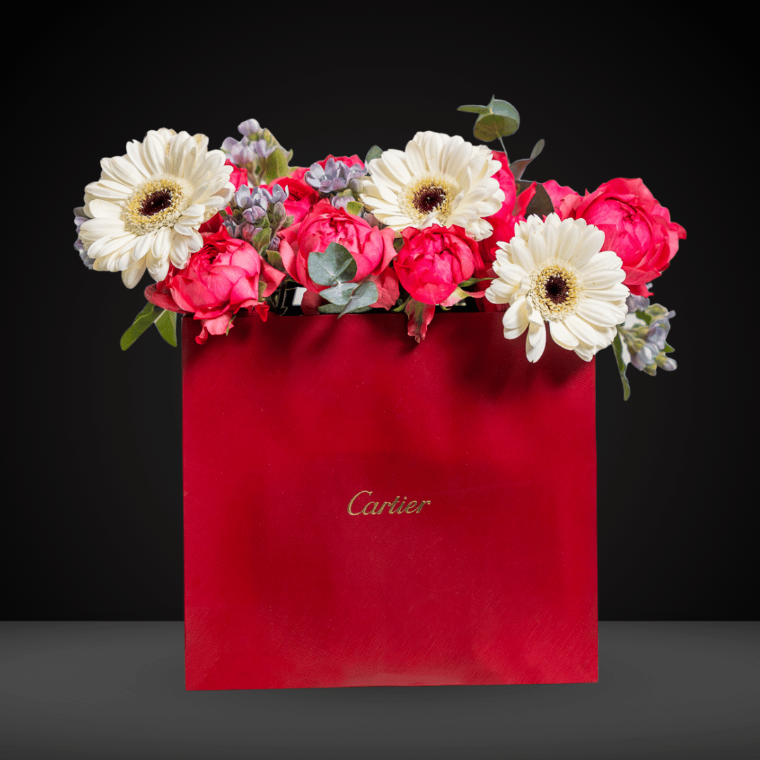 A timeless expression of love and luxury, Crimson Dream features a breathtaking arrangement of red roses and white flowers elegantly presented with a Cartier bag, paired with our exclusive gifting concierge service to select the perfect Cartier gift on your behalf. (The gift shown in the product image is for showcase purposes only and not included in the package price.)