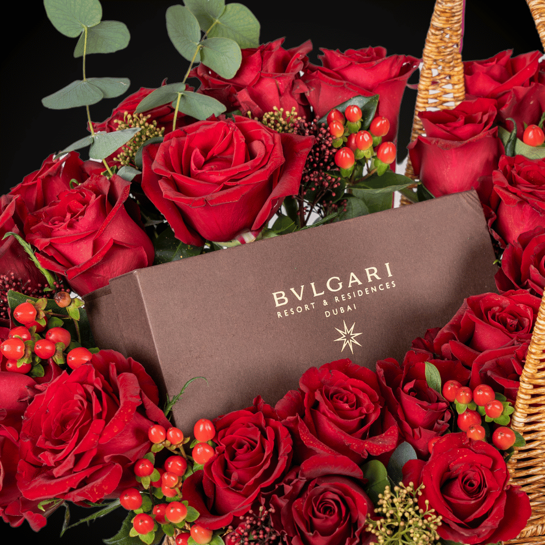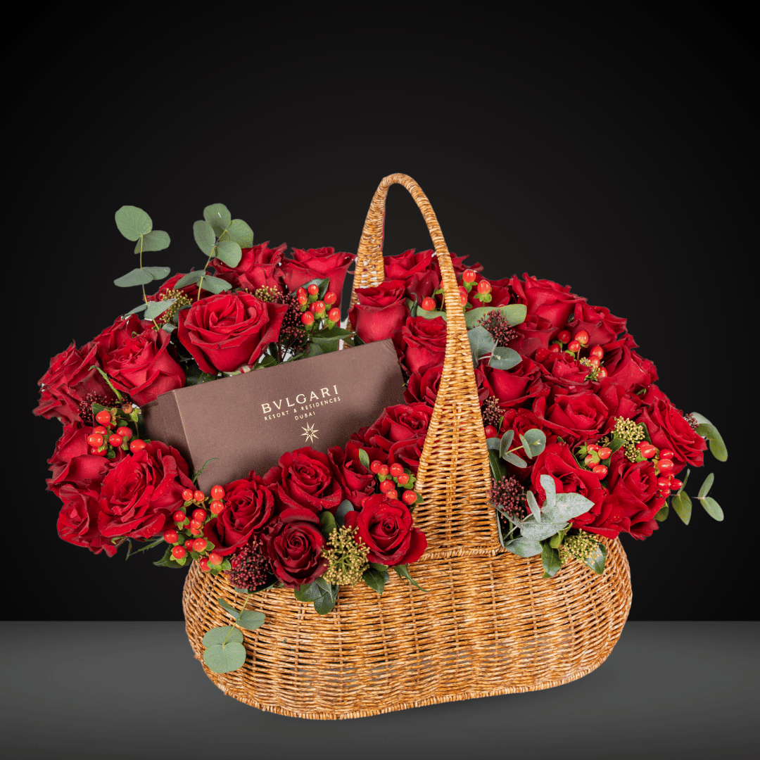 A grand expression of love and luxury, Red Romance features a lavish arrangement of red roses in an elegant oversized basket, paired with our exclusive gifting concierge service to secure a Bvlgari UAE Spa Voucher for an unforgettable indulgence. (The gift shown in the product image is for showcase purposes only and not included in the package price.) 🎁💆♀️
